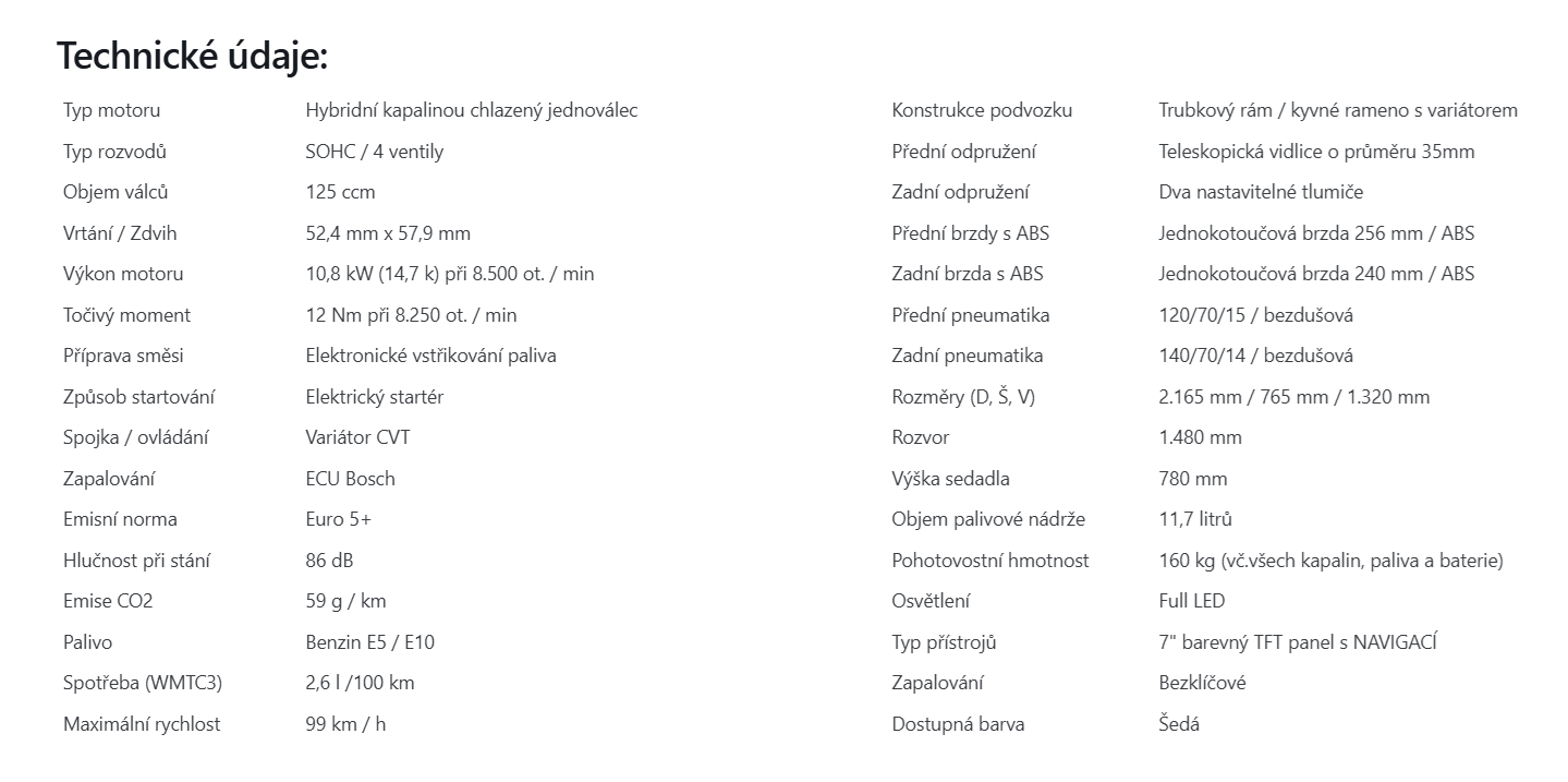 FORT 125 N - Prémiový 125ccm skútr pro náročné jezdce